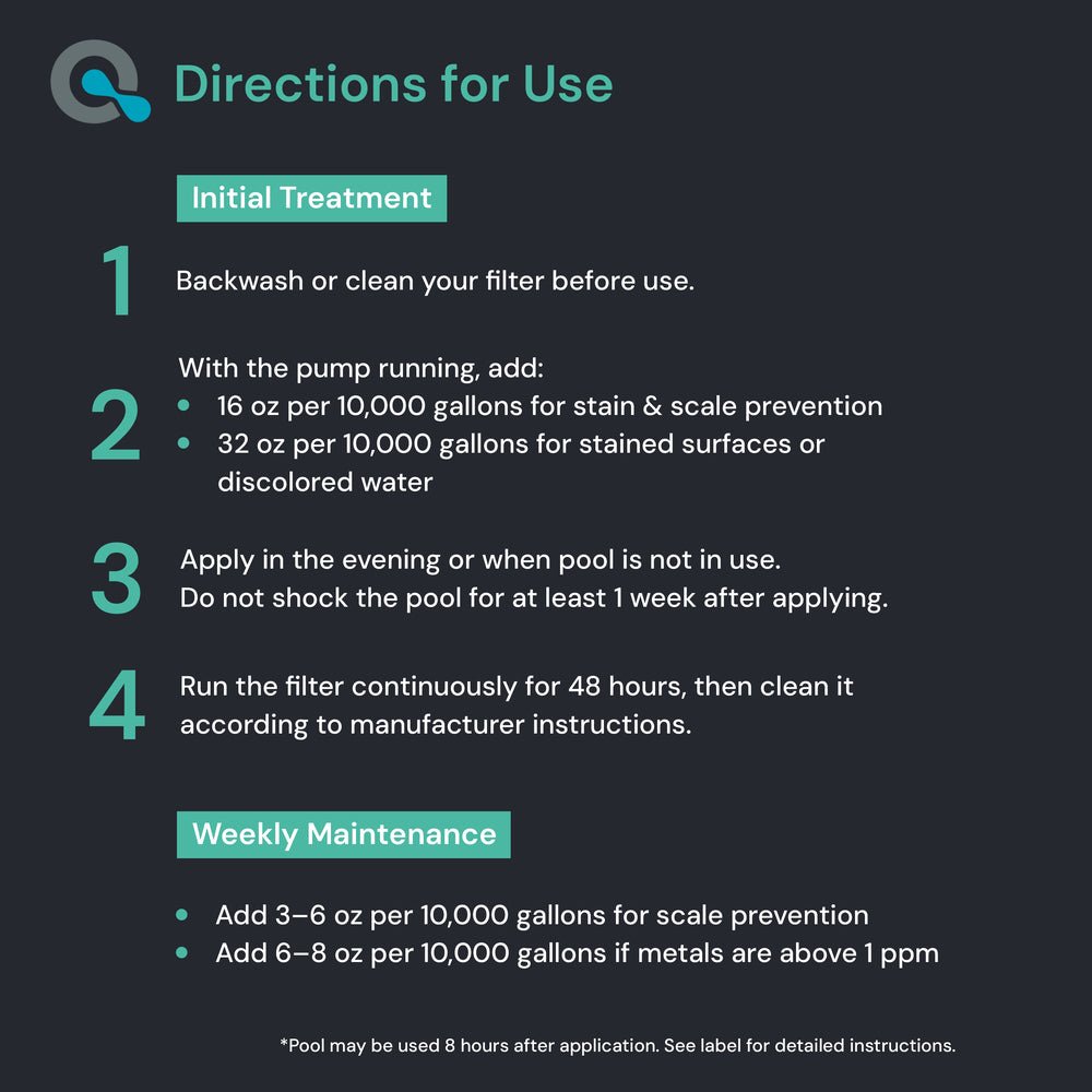 Designed for saltwater pools, this stain and scale treatment helps manage mineral-related buildup and discoloration on pool surfaces when used as directed. Regular use can support cleaner-looking surfaces and assist with maintaining clear, well-maintained pool finishes as part of routine care.